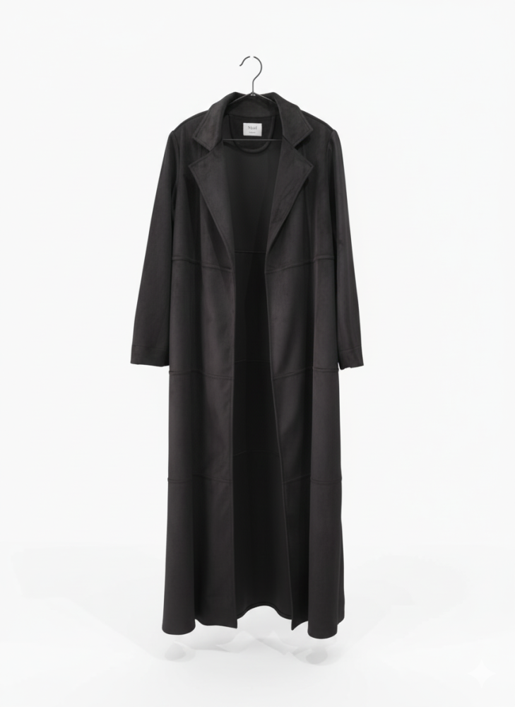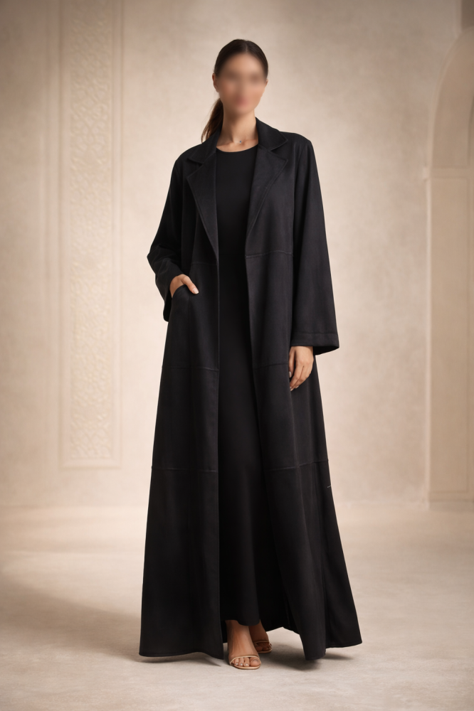 عبايه مخمل شتوي أنيقة ومريحة للشتاء، تصميمها المخطط المفتوح من الأمام يمنحك إطلالة عصرية ومرنة تناسب الإطلالات الرسمية والكاجوال معًا