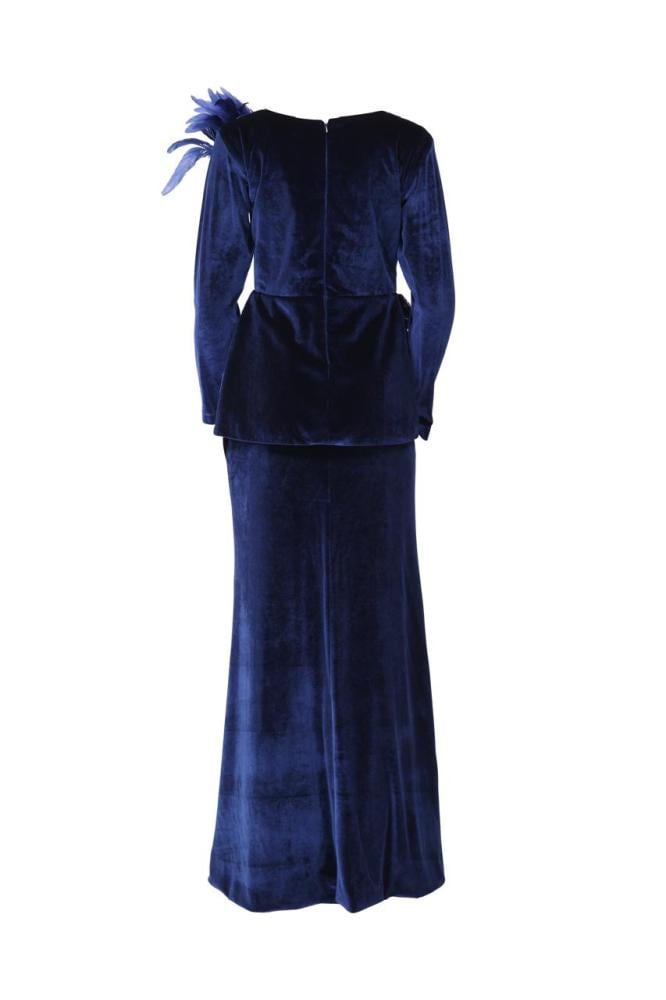 فستان مخمل سهرة بلون كحلي أنيق يجمع بين الفخامة والراحة. تصميمه المخصر يبرز جمال القوام ويوفر إطلالة جذابة ومناسبة للمناسبات الرسمية والسهرات.